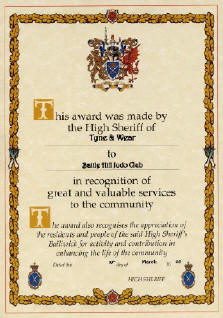 Presentation of £350 from High Sheriff of North Tyneside.